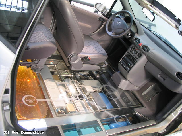 Die Halle zum Thema Eisenbahnen war mir (natürlich) zu klein, aber es ist halt ein Technikmuseum im Allgemeinen und keine Eisenbahnausstellung. Egal, dafür gibt es dort auch tonnenweise andere Ausstellungsstücke zu bestaunen, vom Metallbaukasten über die gerade stattfindende Sonderausstellung über die Gebrüder Wright (mit Uralt-Flugzeugen) bis hin zu alten Musikinstrumenten. Einziger Wermutstropfen war der gerade stattfindende Umzug der Automobilausstellung in die Museumshallen auf der Theresienwiese, wo ab 2005 die Ausstellungsstücke zum Thema Verkehr & Mobiles gebündelt ausgestellt werden sollen. Aus diesem Grund war die Fahrzeugausstellung nicht für Besucher geöffnet. Da von den drei Hallen der Verkehrsausstellung bereits eine eröffnet war, bin ich da natürlich auch noch hingedüst, man gönnt sich ja sonst nix. Zum Glück liegen die Messehallen recht zentral an der Theresienwiese (das ist da, wo das Oktoberfest stattfindet).