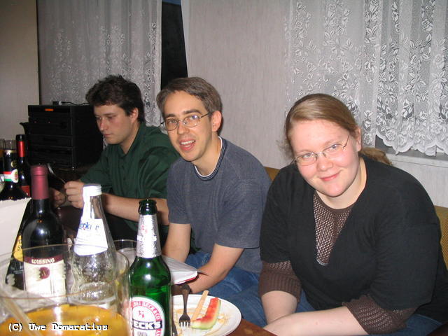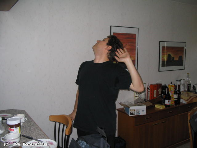 Nachdem dann der Hunger nicht mehr so akut war, entsponnen sich lustige Gespräche über Elektrolytgetränke mit Schluckauf und andere seltsame Themen, an die ich mich nicht mehr in allen Einzelheiten erinnern kann. Jedenfalls gingen wir irgendwann dazu über, Knabberkram und alkoholische Getränke zu konsumieren (die Autofahrer natürlich ausgenommen, die begnügten sich mit Wasser und Cola).