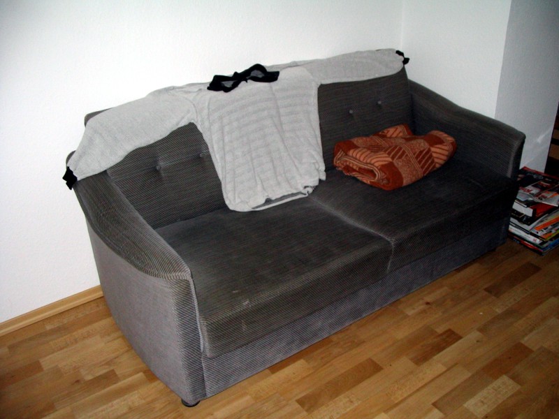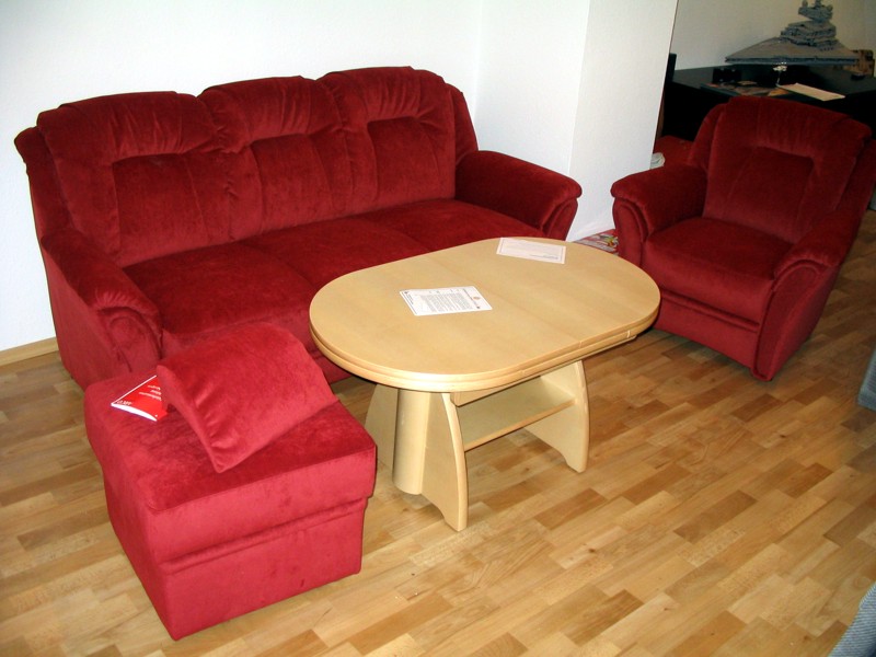@Ines: Das alte Sofa ist noch „Made in GDR“ und inzwischen ein halbes Dutzend Mal umgezogen – da war ein neues nötig. Der alte Schrank war ein Billigstmodell, ebenfalls steinalt und ebenfalls schon x-mal umgezogen – den hielt nur noch viel guter Wille zusammen. Abgesehen davon ist der neue Schrank mehr als doppelt so groß, da kann ich endlich alles unterbringen. Und dass zu dem Sofa noch ein Tisch gehört scheint dir auch nicht aufgefallen zu sein…