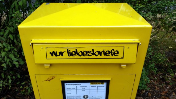 Heute in der Stadt gesehen. Da braucht man sich auch nicht wundern dass die Post alle Nase lang das Porto erhöhen muss, bei all dem Hass in der Welt – vom Liebesbrieftransport wird sich der Briefkasten wohl kaum finanzieren lassen.