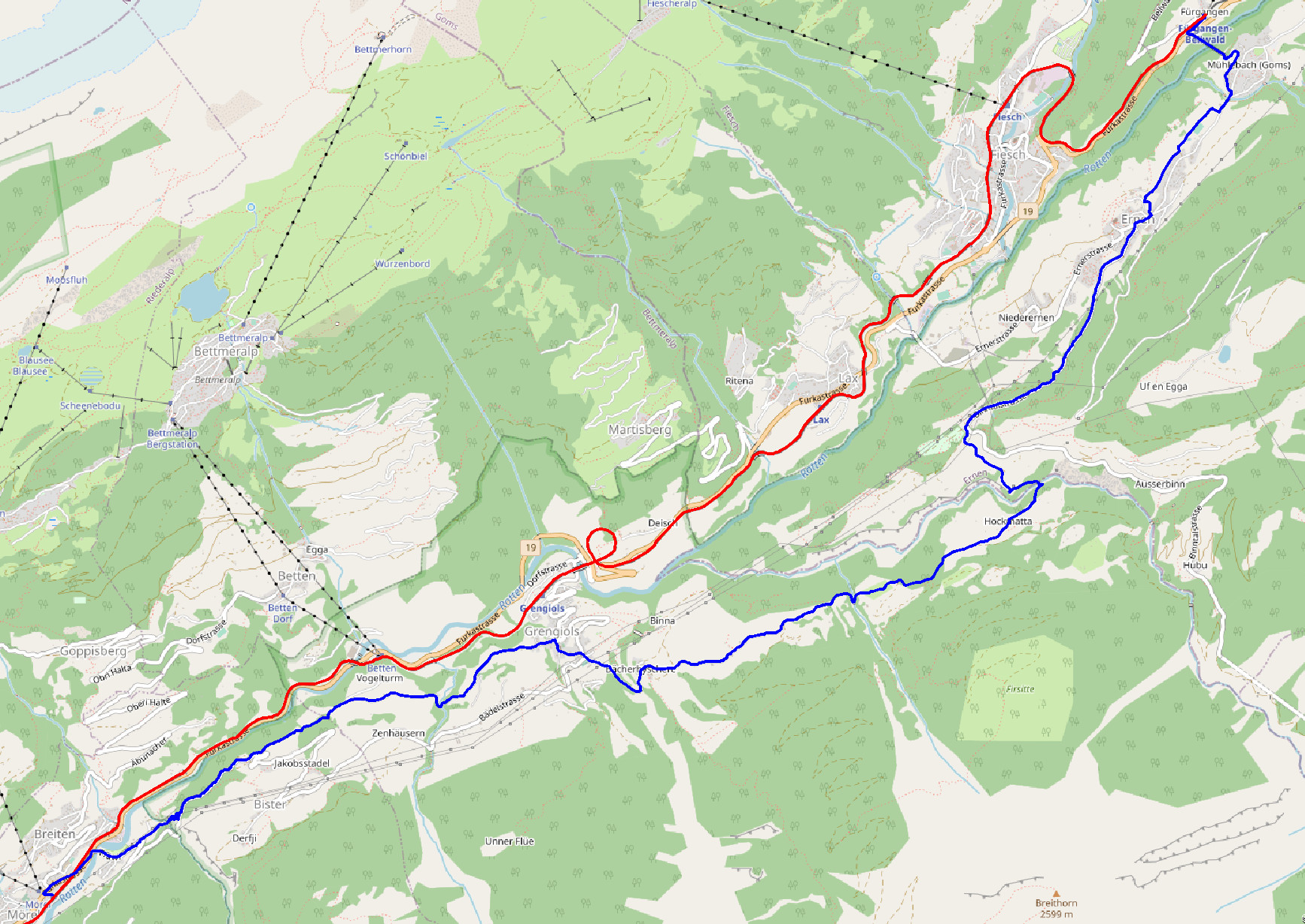 Von Fürgangen-Bellwald durch den Landschaftspark Binntal nach Grengiols und weiter nach Mörel.