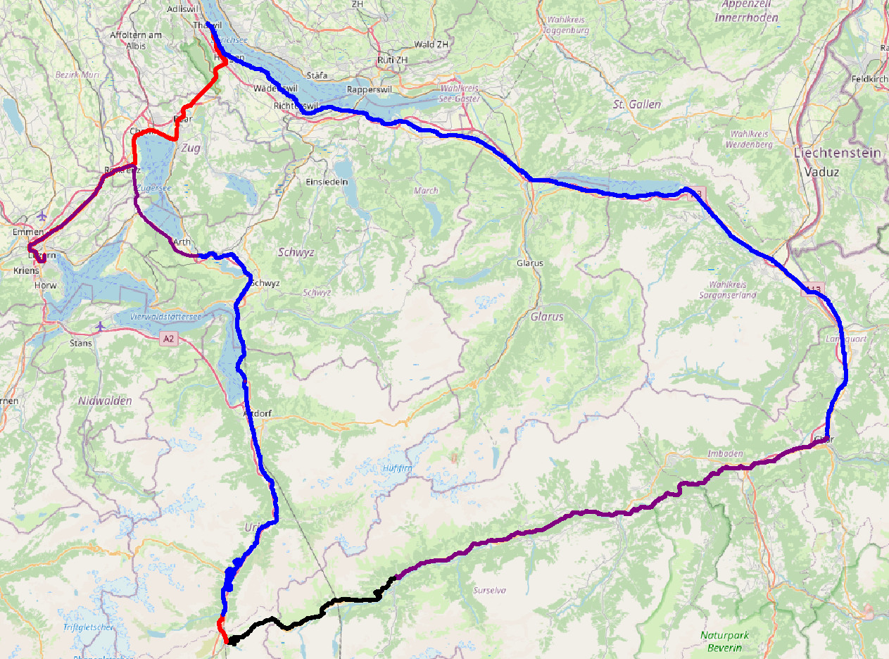 | Arth-Goldau | 15:07 Uhr | 15:15 Uhr | IC 21 | 62,19 km |